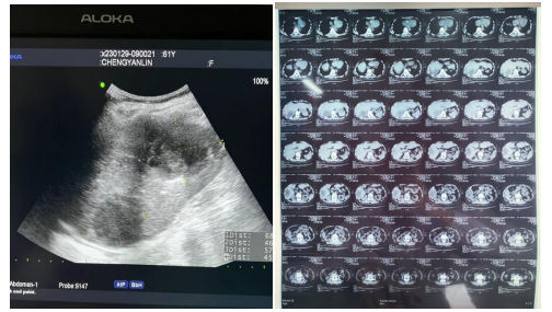 61岁的陈婆婆家住新洲,因右上腹持续性疼痛发热10天,伴有畏寒、高热,在当地医院行补液抗炎治疗,效果不佳,于1月29日到湖北省第三人民医院(省中山医院)阳逻院区就诊。经完善相关检查,超声检查提示:肝内多发无回声区(考虑肝脓肿)。得知检查结果后,陈婆婆及家属说出自己的顾虑:病痛难受、年龄大、术后伤口愈合迟缓、费用受限、家属不方便照顾等,经过普外科、超声影像科、麻醉科多学科会诊,在两院区一体化管理、学科深度融合的背景下,硚口本部超声影像科主任刘琨秉承着对专业的精益求精和不断创新精神和对病人减少创伤、减轻痛苦的原则,为陈婆婆制定了超声引导下肝脓肿穿刺引流方案。