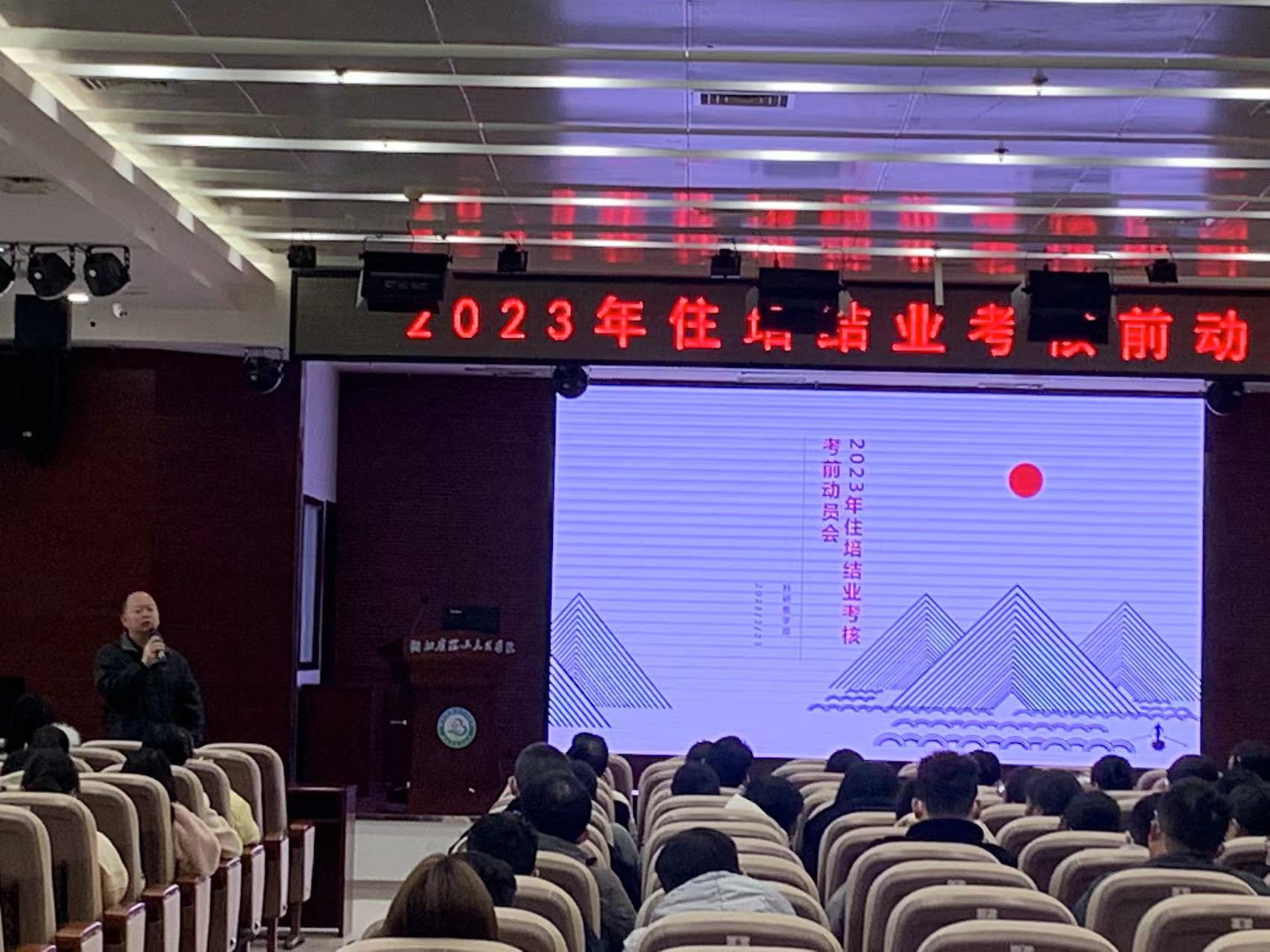 会上,为了让全体学员充分认识到结业考核的严峻性和重要性,李想副主任对住院医师规范培训结业考核相关政策、近几年结业考核首考通过率、年度业务水平测试成绩、结业考核前专业理论及临床实践技能培训计划等进行了详细介绍,同时要求学生关注考核安排和考核项目,对考试的时间和要求做到心中有数,希望各位住培学员能珍惜考前的每一分每一秒,抓紧时间学习和训练,尽最大努力做好考前准备。