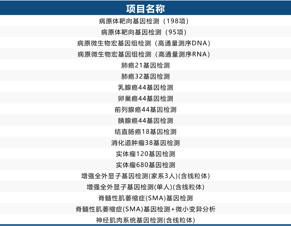 精准分子检测中心现有不同类型疾病的小panel检测,如胰腺癌44基因检测,消化道肿瘤38基因检测,同时也有实体瘤680基因的大panel基因检测方案,满足不同患者的临床需求,性价比高,缓解患者的经济压力。样本为新鲜组织如手术组织、活检组织;FFPE样本如石蜡切片、石蜡块;血液如外周血等。
