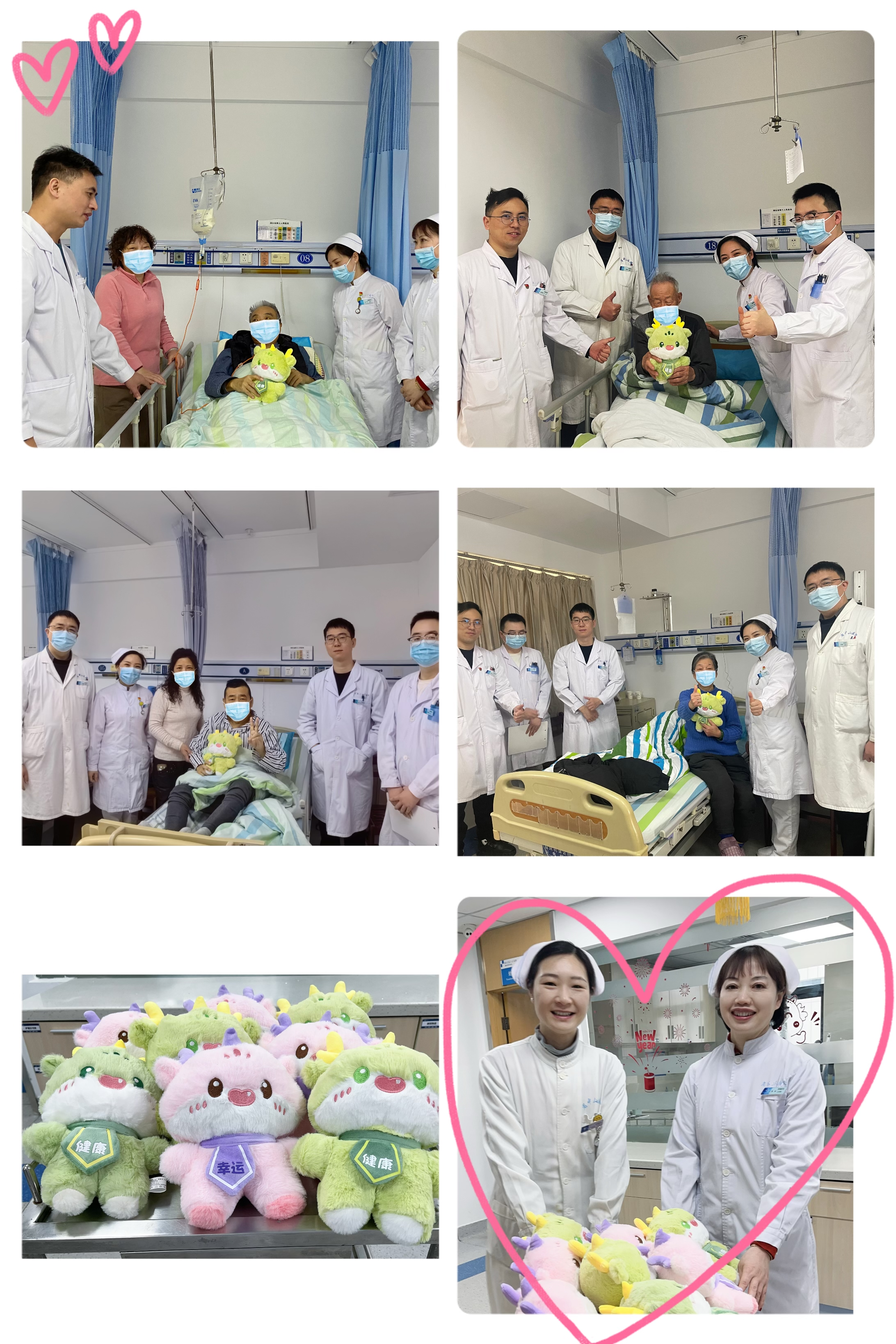 当天上午,肝胆胰外科医护团队来到患者床前,仔细询问患者病情,为住院患者送上富有年味特色的龙宝宝,并祝愿他们早日康复,平安幸福。