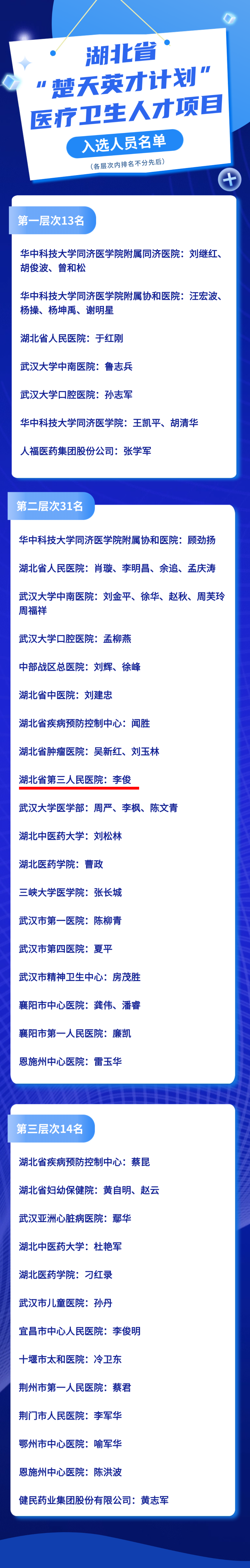 湖北省第三人民医院李俊入选湖北省“楚天英才计划”医疗卫生人才项目