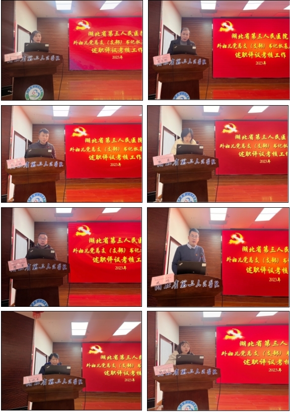 党总支书记雷丹及13名党支部书记依次就2023年度抓基层党建工作情况进行述职汇报,各位书记紧扣职责、紧贴亮点、盯紧短板不足,围绕学习贯彻习近平新时代中国特色社会主义思想和党的二十大精神、党建与业务相融合、抓牢意识形态和党风廉政建设等方面进行全方位阐述,提出努力方向和下一步举措,集中反映了一年来抓党建工作的生动实践,展示了医院党建工作的良好成效。