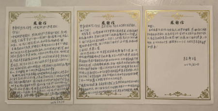 前不久,已经住院8个月的老廖给医生、护士各写了一封感谢信,他说:“医生、护士都对我很好,我在好几家医院住过院,在你们这里感觉最温暖,像家里一样,我真的特别感谢你们!”