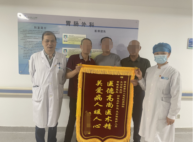 张大爷及家属为胃肠外科医护送来锦旗表示感谢