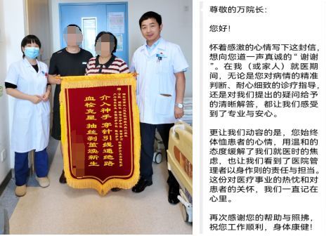 近日,家住恩施66岁的王婆婆在湖北省第三人民医院(湖北省中山医院)神经内科顺利康复出院。她与家人难掩感激,特地向科室送上一面锦旗,并在微信上发送了一封感谢信,感谢神经内科团队的精湛医术与悉心照料,助她重获健康。